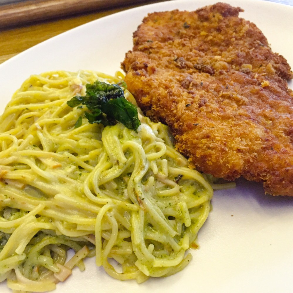 Having said that, just last week, I thought I’d try a new main course. And I’m glad I did. This next dish is also one of their classic dishes, the Turkey Scaloppine, with a side of creamy pesto pasta. The turkey was very yummy, huge portion, and just goes to prove that anything tastes better deep-fried 🙂